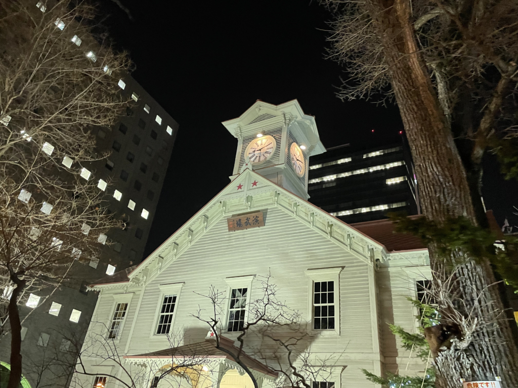 味の時計台ならぬ夜の時計台。