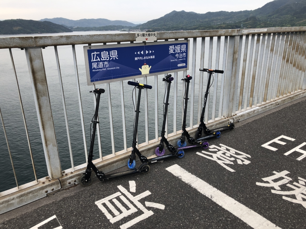 広島県と愛媛県の境目もこの橋上にあるほか,サイクリストの聖地記念碑もある。