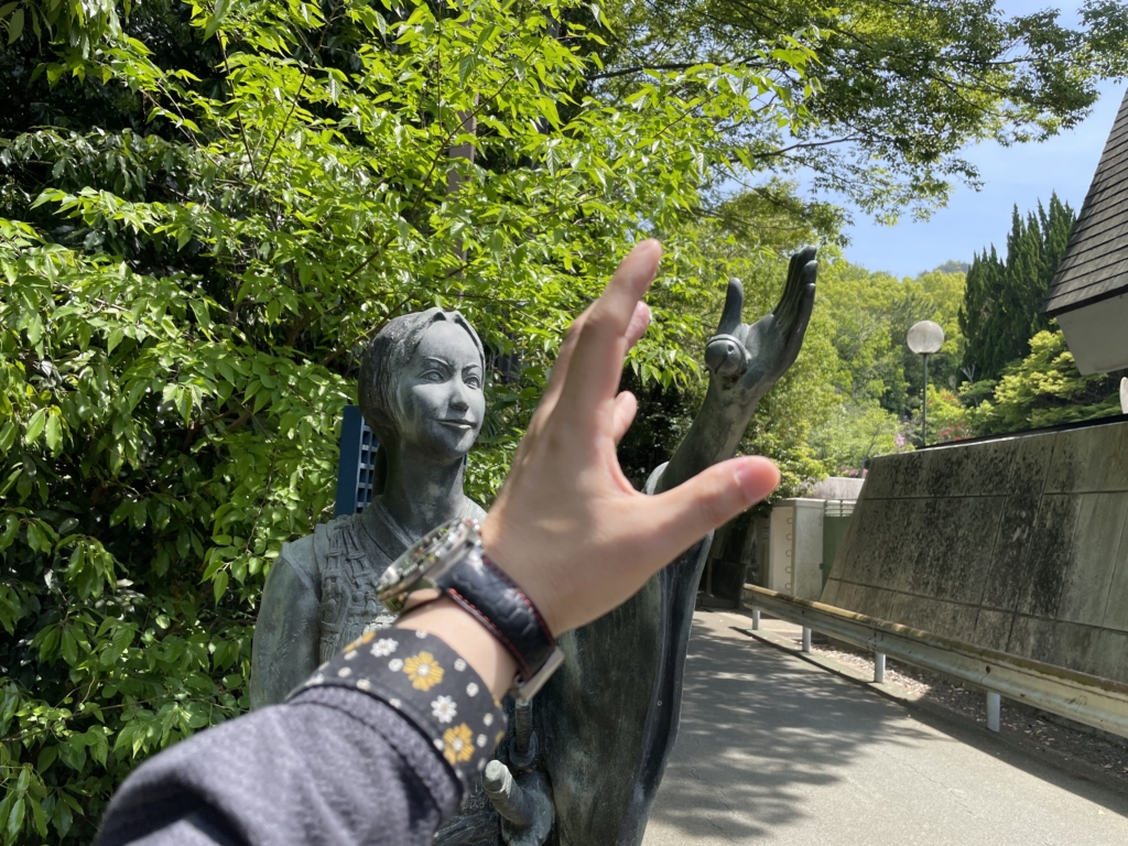 大山祇神社の境内を出ると,IIKANJIの像が。