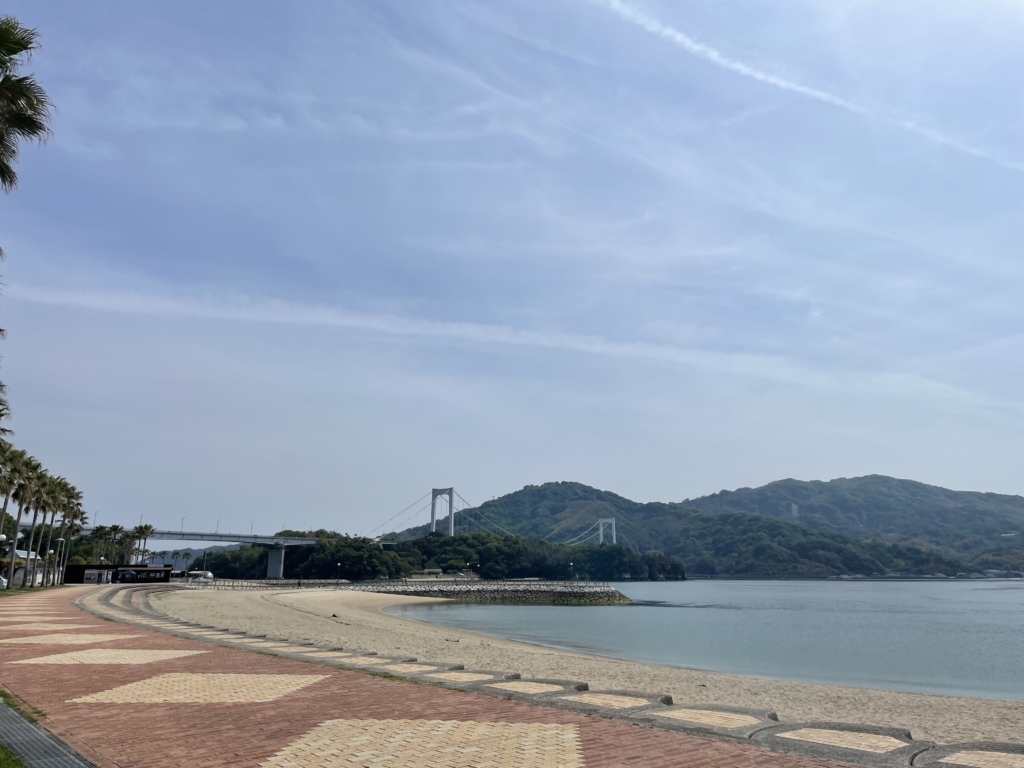 同じしまなみ海道を構成する来島海峡大橋や多々羅大橋等と比べると規模が小さいが,橋が綺麗に見えるポイント。