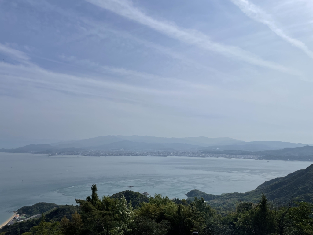 この写真では小さすぎて分からないが,現地では今治城も視認できる。