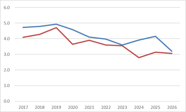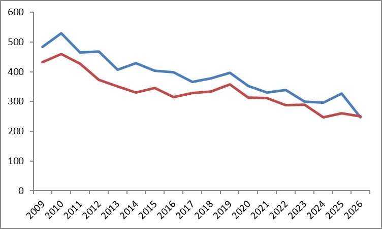 口頭のみだとか狭い界隈で情報収集される方は直近の年度の話題だけが印象に残りやすいため要注意であるが,過去10年間の推移はこのようなかたち。
